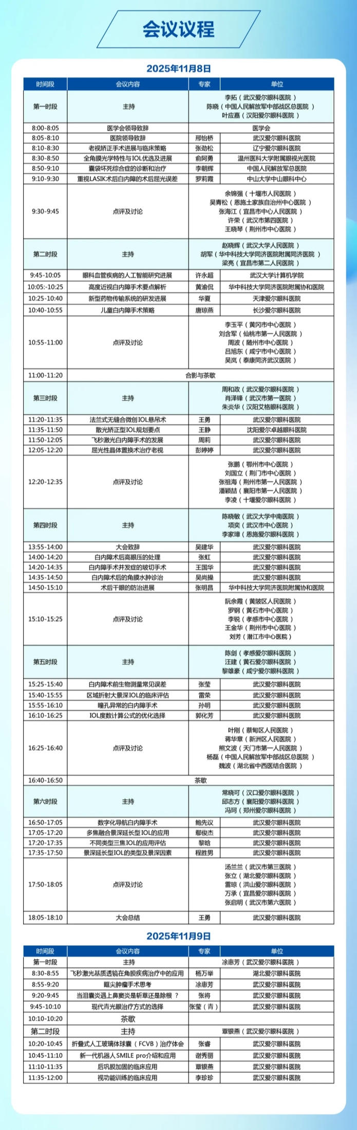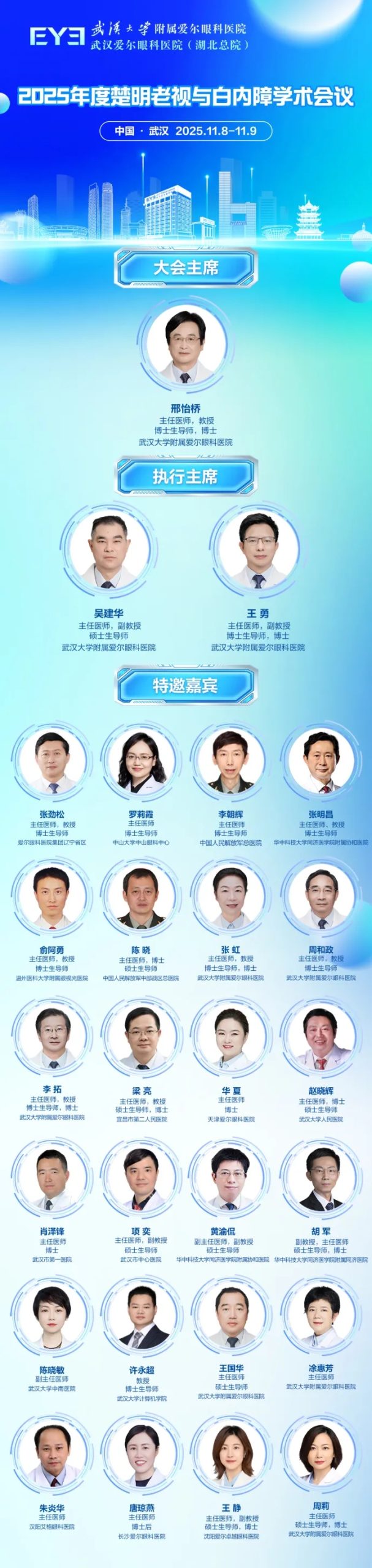 眼科医学的蓬勃发展,离不开新理念的引领与新技术的驱动。为促进临床眼科医生实践操作能力的提升,推动华中地区眼科学术更高水平发展,2025年11月8日—11月9日将举办2025年度楚明白内障学术会议,以专业赋能助力光明事业前行。