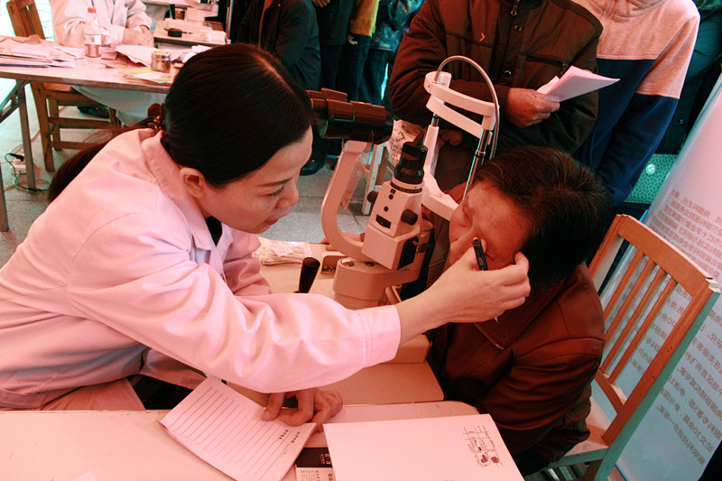 曾庆延主任在给患者检查眼睛