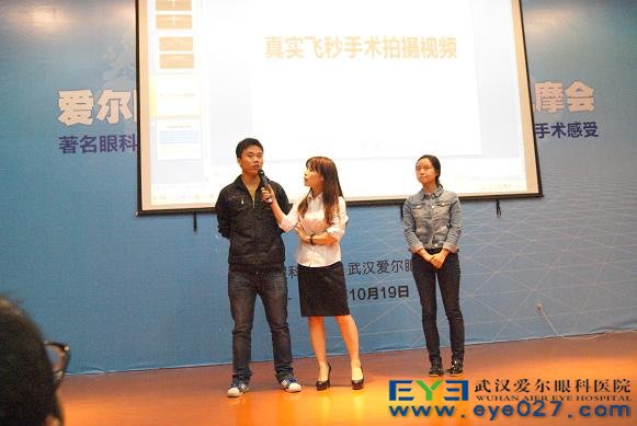 武汉大学附属爱尔眼科医院于2013年10月19日举办了首届近视手术观摩会,吸引了百余位朋友前来参加。活动现场气氛热烈,武汉大学附属爱尔眼科医院屈光科张青松主任于近视朋友们零距离交流了解激光近视手术,现场也播放了真人手术视频。不少参加活动的朋友声称,通过此次交流观