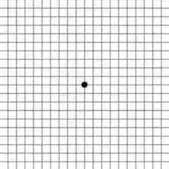 不过因为视物变形的幅度往往比较小,不易察觉,察觉了可能也不会在意。这里给大家提供一个简易的自测方法——阿姆斯勒方格表: