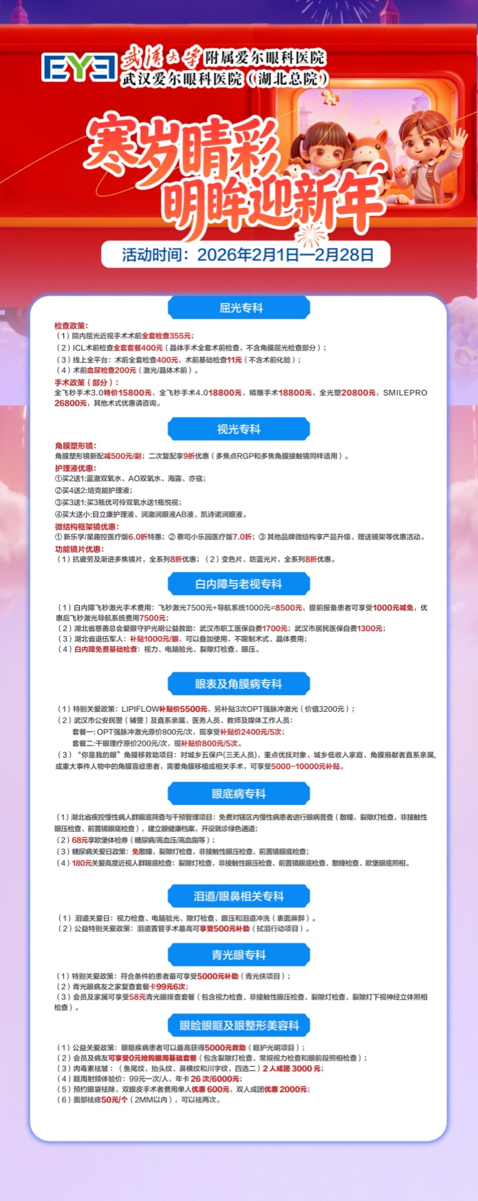 首页 > 爱尔新闻 > 院内活动 > 明眸迎新年 武汉爱尔眼科2026年2月优惠活动一览